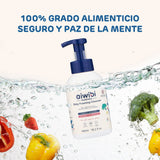 Presentamos nuestro suave y efectivo limpiador espumoso para bebés, diseñado para mantener la piel delicada de tu bebé limpia y saludable. Nuestro limpiador está hecho con ingredientes de limpieza a base de plantas, no irritantes. Elimina residuos de pesticidas de las superficies de frutas y verduras, preservando sus nutrientes y cuidando la salud de la familia. Con pH 6.7, brinda cuidado suave para las manos de los padres.