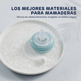 El biberón antigases tipo seno Aiwibi utiliza materiales de biberón seguros y confiables en su diseño de biberón de cuello ancho para facilitar la limpieza. El aire se intercambia a través de un orificio de ventilación en la tapa de la tetina del biberón para equilibrar la presión y reducir eficazmente los síntomas de flatulencia, hipo y vómitos. Una pajita con peso en la parte inferior permite que el bebé beba desde cualquier ángulo. El diseño de la tetina de silicona suave similar a un seno se acerca a la piel y se curva para brindar una alimentación cómoda y apoyo durante la transición de la lactancia materna a la alimentación con biberón.