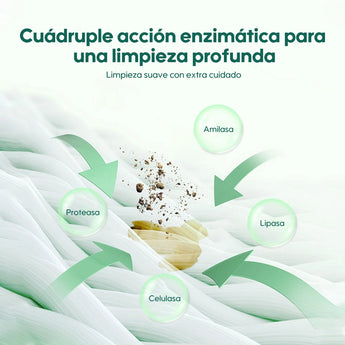 Nuestro detergente líquido para bebés con enzimas vegetales está especialmente formulado para eliminar eficazmente las manchas difíciles en las telas. Diseñado exclusivamente para niños, con una fórmula de pH neutro sin blanqueadores fluorescentes. Los ingredientes de limpieza se extraen de plantas y se mezclan con esencia de camelia para eliminar las manchas profundas.